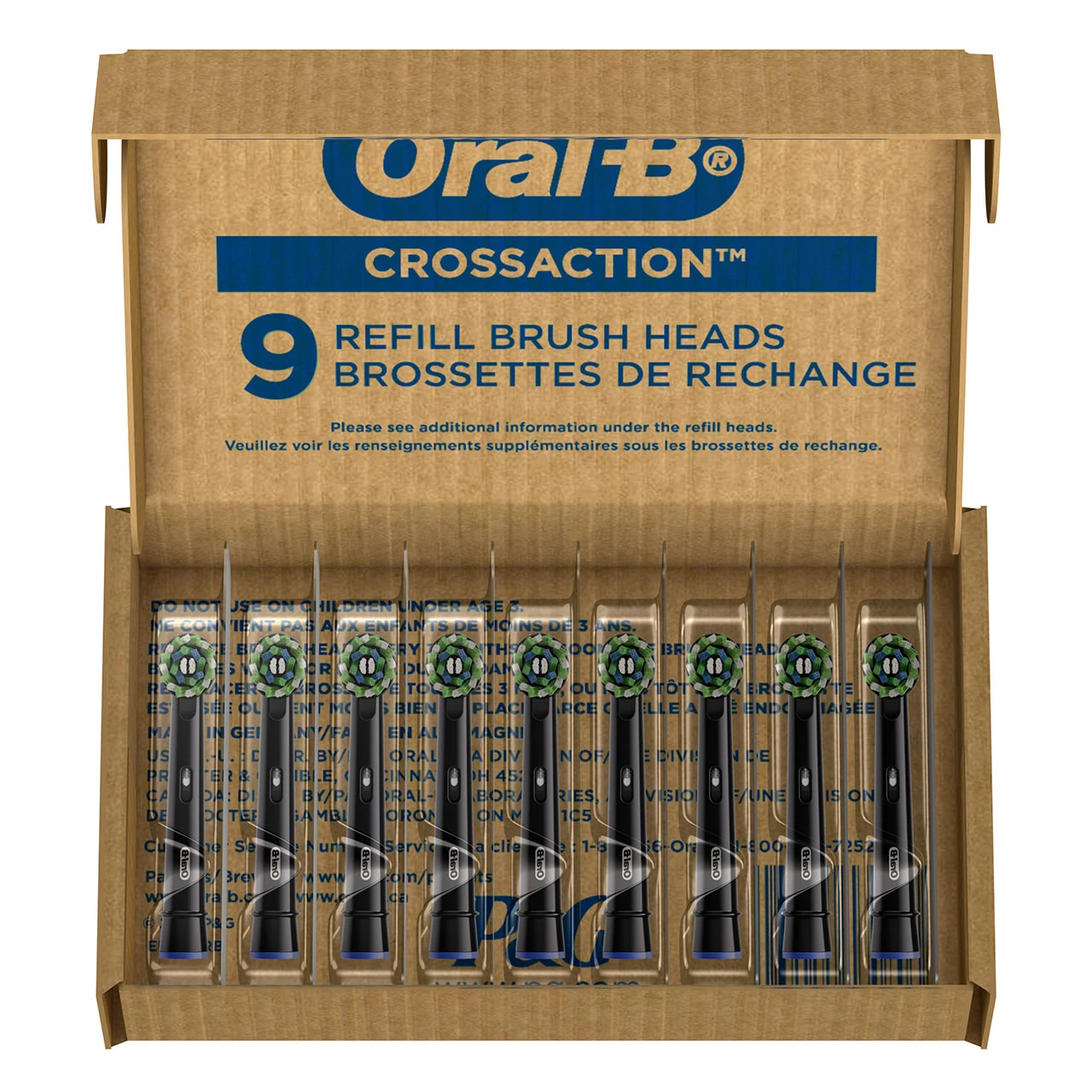 - You will receive (9) Oral-B CrossAction Brush Heads.