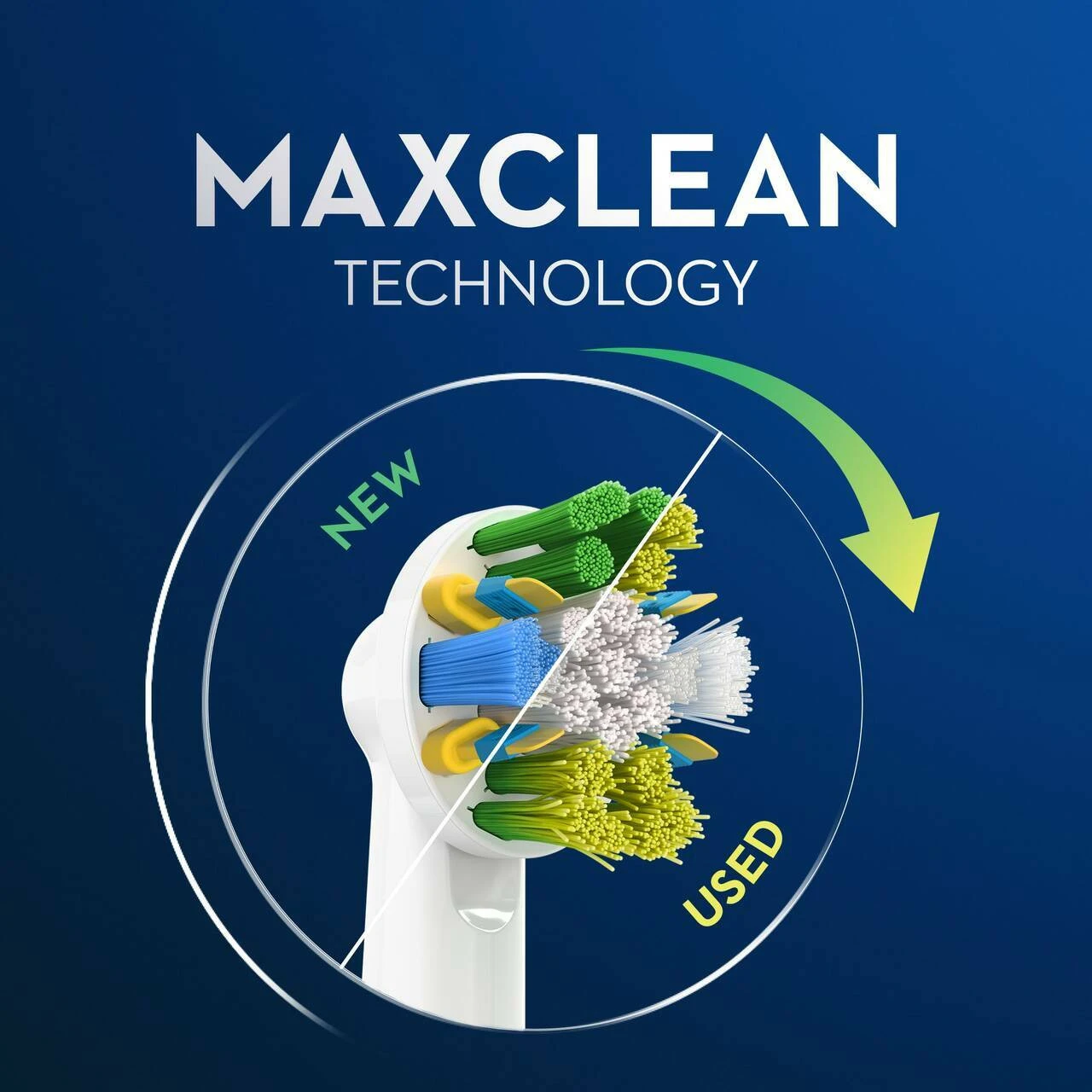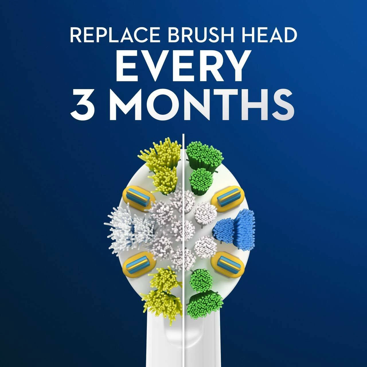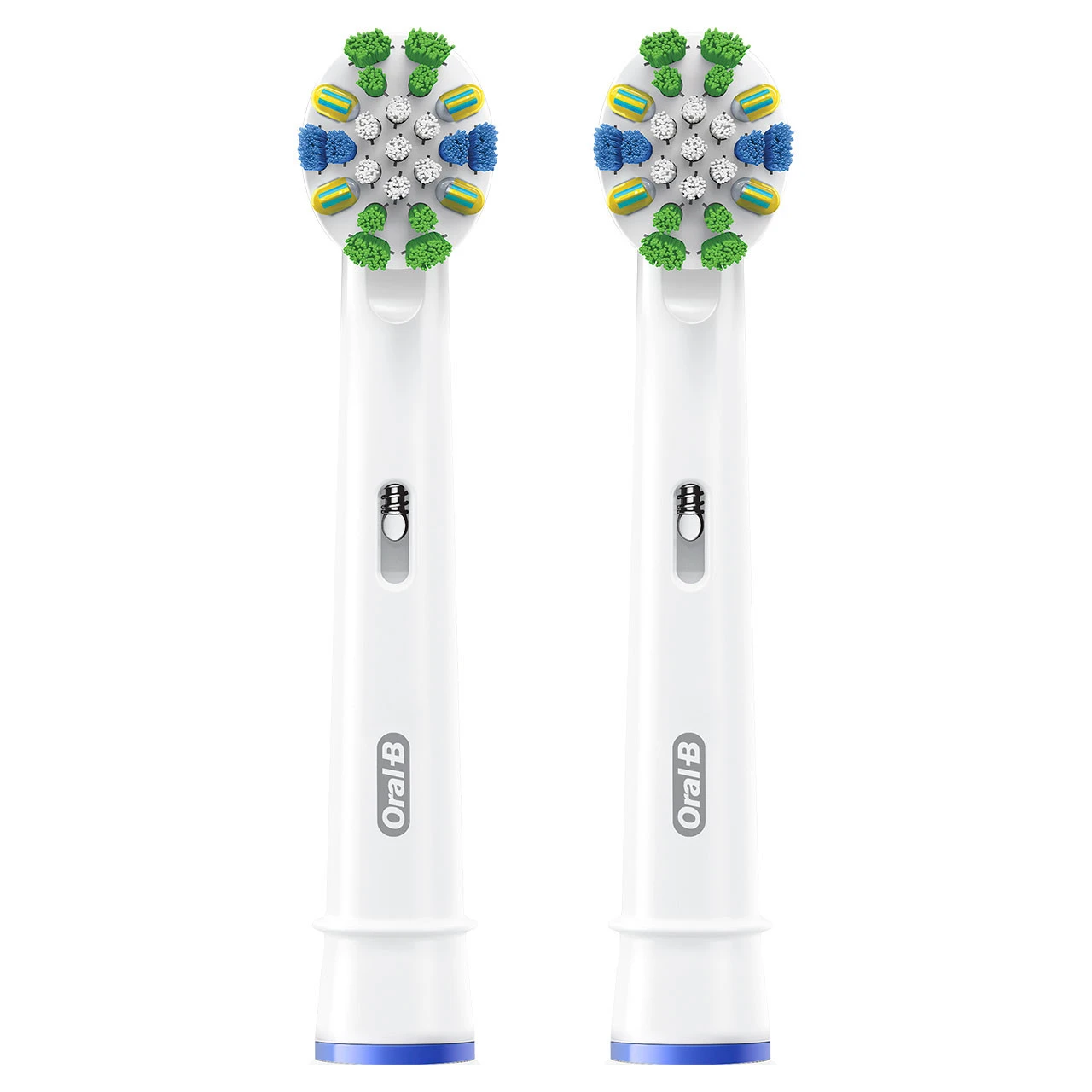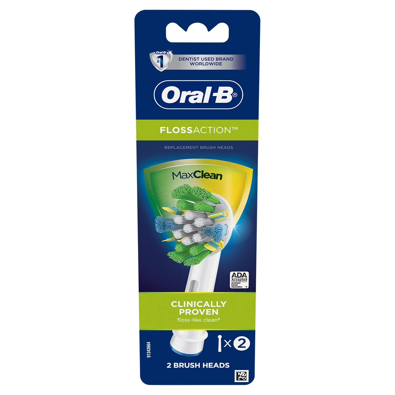 The Oral-B FlossAction Replacement Electric Toothbrush Head provides a floss-like clean for healthier gums. The round brush head is inspired by dental professional tools for a tooth-by-tooth clean, with specially engineered bristles. The FlossAction toothbrush head has unique floss action bristles to loosen plaque. Additionally, the Bristle Protection technology helps help keep your brush clean for up to 3 months*.