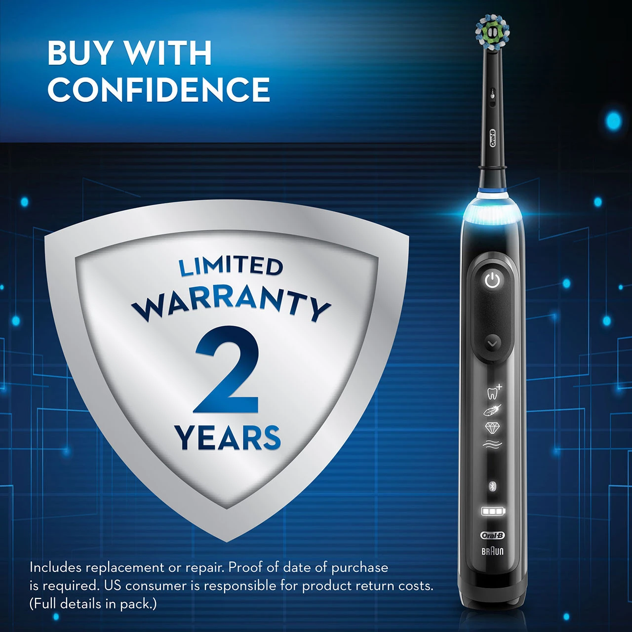 Intelligent Brush for Real-Time Feedback The Oral-B Genius 6000 electric toothbrush with Bluetooth technology provides focused care as you follow your dental care journey and receive guidance that can be adjusted by your dental professional. Download the Oral-B app on your smartphone and use Bluetooth technology to get real-time feedback while you clean for improved brushing habits. The Focused Care feature allows you to implement your dentist’s recommendations via customizable brushing plans for key focus areas. The Dental Care Journeys feature lets you follow a pre-programmed routine that matches your oral care goals. These journeys include Fresh Breath, Plaque Fighter, Whitening, Gum Health and Ortho Care.
