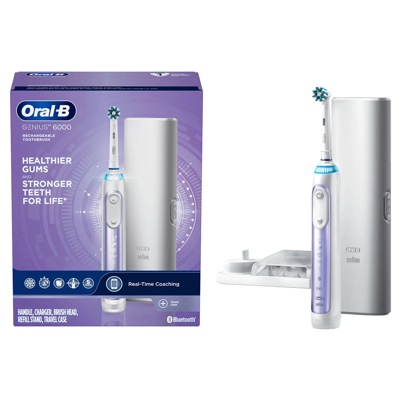 Intelligent Brush for Real-Time Feedback The Oral-B Genius 6000 electric toothbrush with Bluetooth technology provides focused care as you follow your dental care journey and receive guidance that can be adjusted by your dental professional. Download the Oral-B app on your smartphone and use Bluetooth technology to get real-time feedback while you clean for improved brushing habits. The Focused Care feature allows you to implement your dentist’s recommendations via customizable brushing plans for key focus areas. The Dental Care Journeys feature lets you follow a pre-programmed routine that matches your oral care goals. These journeys include Fresh Breath, Plaque Fighter, Whitening, Gum Health and Ortho Care.