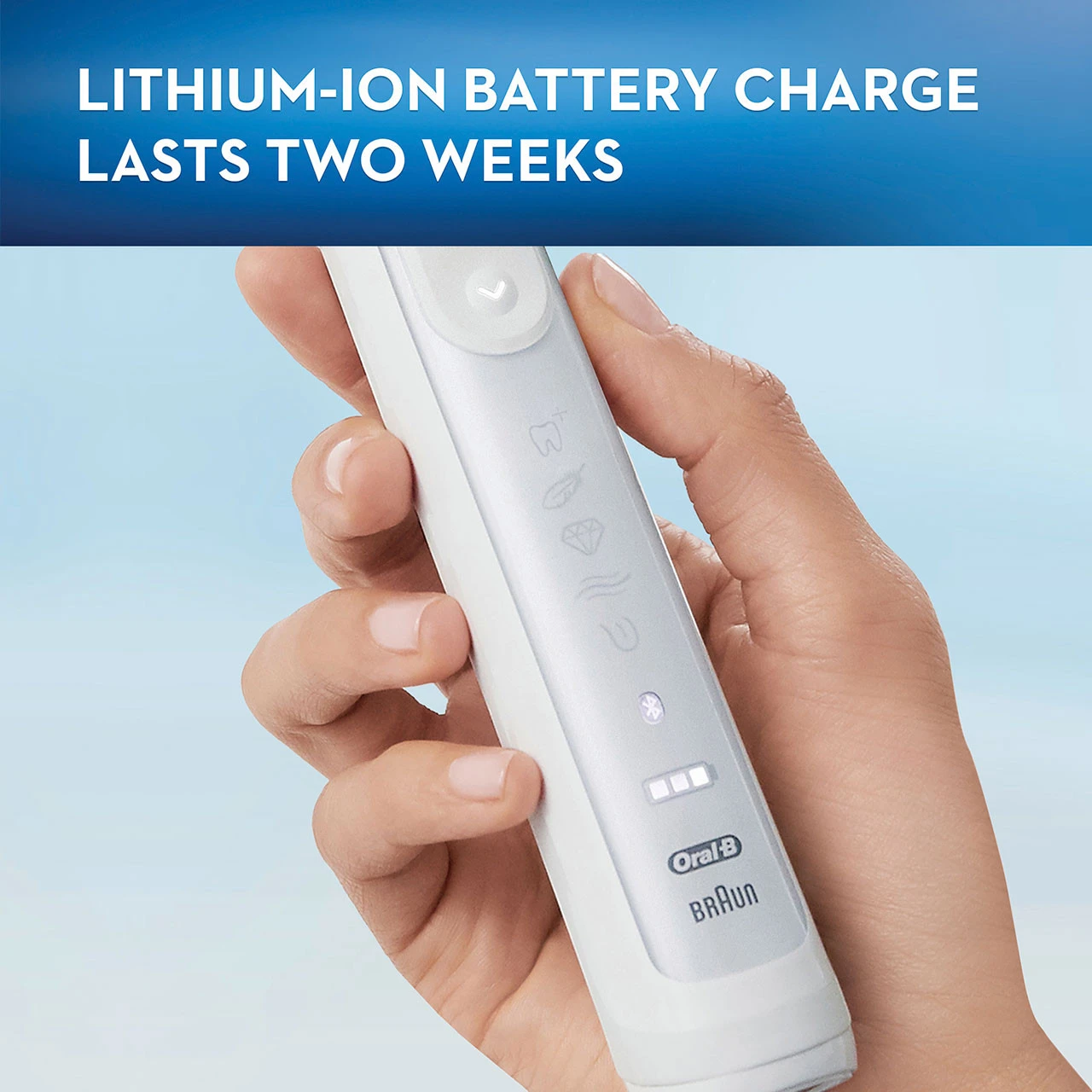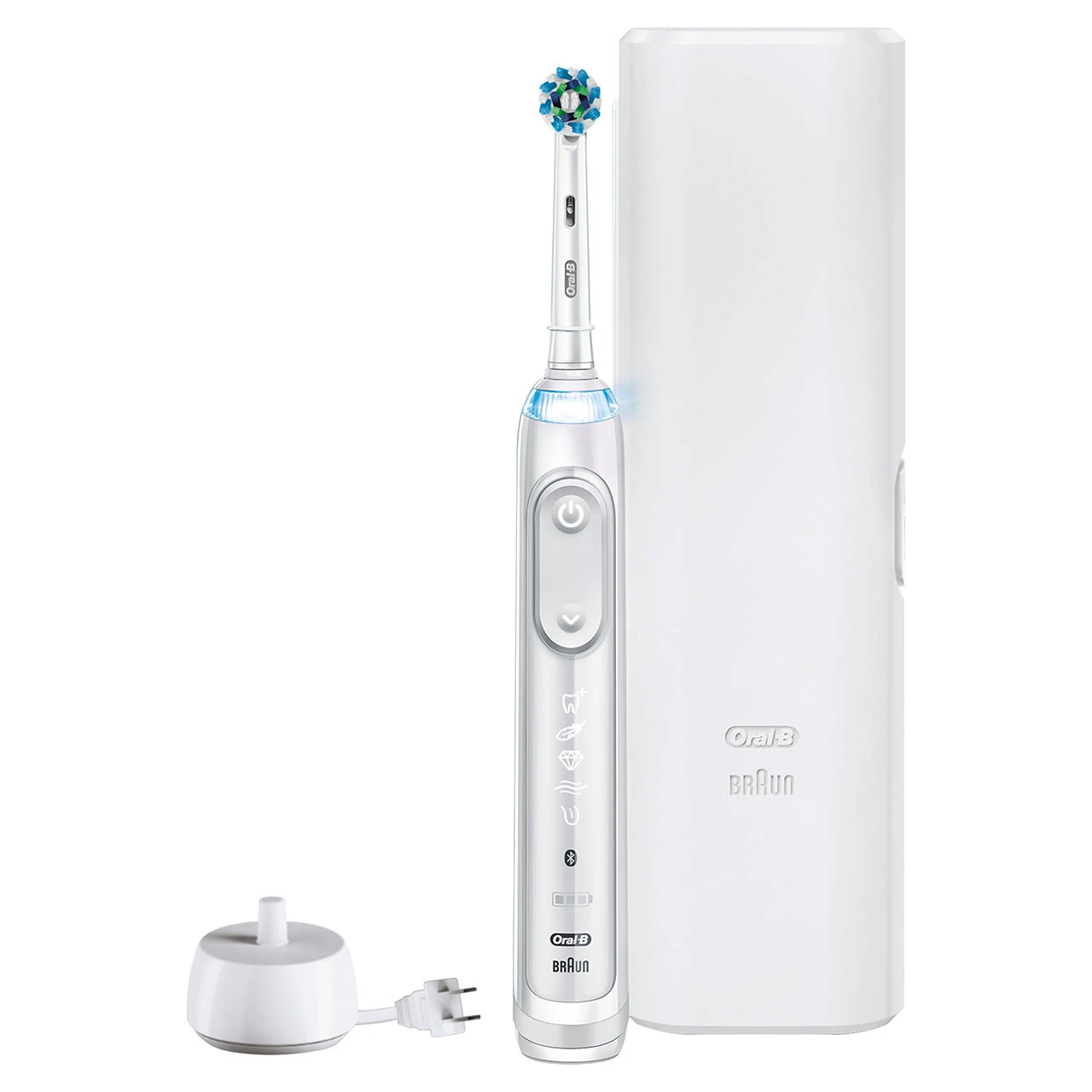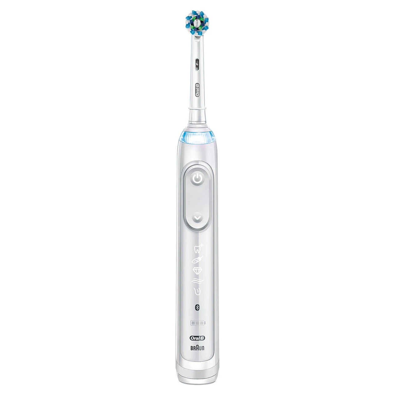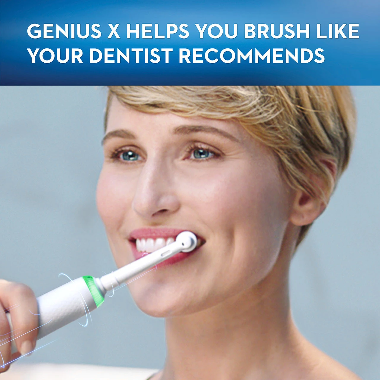 The Oral-B Genius X Limited helps you brush like your dentist recommends. It has a revolutionary artificial intelligence technology that enables it to recognize your brushing style and coaches you for your best results every day. Using Bluetooth and your smartphone it allows you to see and improve your daily brushing habits, and provide you with real-time feedback about your brushing habits. The Oral-B app seamlessly pairs your Oral-B Genius X toothbrush with a smartphone and you’re on your way to brushing like your dentist recommends. The 360 SmartRing with LED lights allows you to personalize your brushing experience with your choice of colors. The SmartRing works with the integrated timer and pressure sensor to provide you with visual feedback on brushing time and brushing pressure. Together, they help you ensure you brush for the recommended 2-minutes while making sure you brush with appropriate pressure to protect your gums from over-brushing. The Oral-B Genius X features 6 brushing modes so you can further customize your brushing experience based on your specific oral care goals. It comes with a rechargeable handle, 1 brush head, a charger and a travel case. Best of all it’s brought to you by Oral-B.