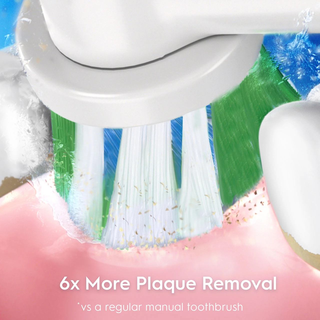 The Oral-B CrossAction Replacement Electric Toothbrush Head is Oral-B’s most advanced technology. It features perfectly angled bristles to remove 500% more plaque for a superior clean**. The round brush head is inspired by dental professional tools for a tooth-by-tooth clean, with specially engineered bristles. Additionally, the Bristle Protection Technology helps keep your brush clean for up to 3 months*.