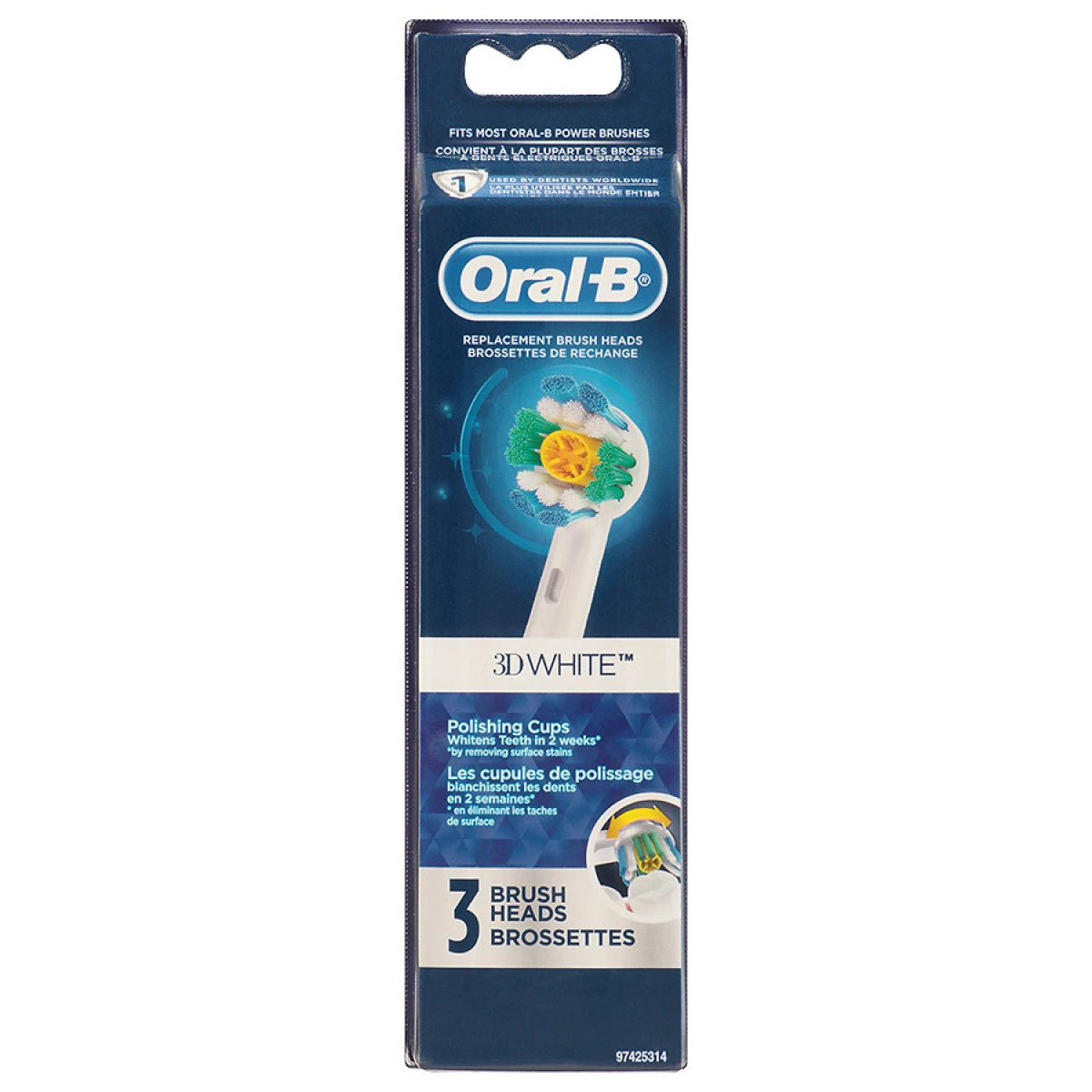 The Oral-B 3D White replacement toothbrush head features a specially designed polishing cup to help remove surface stains while bristles clean away plaque, making it ideal for advanced cleaning and whitening. Round brush head is inspired by dental professional tools for a tooth-by-tooth clean, with specially engineered bristles for optimal tooth coverage.