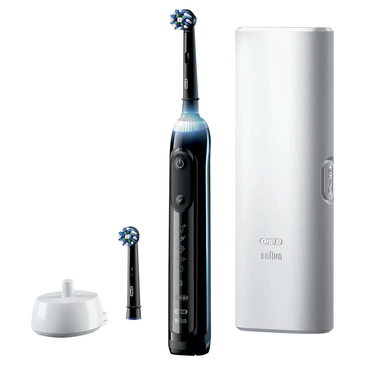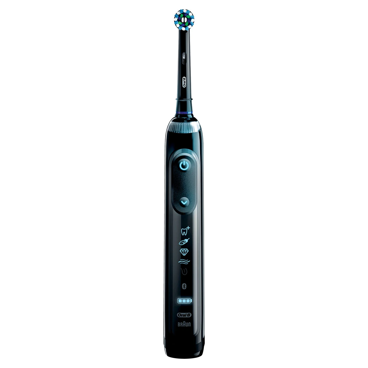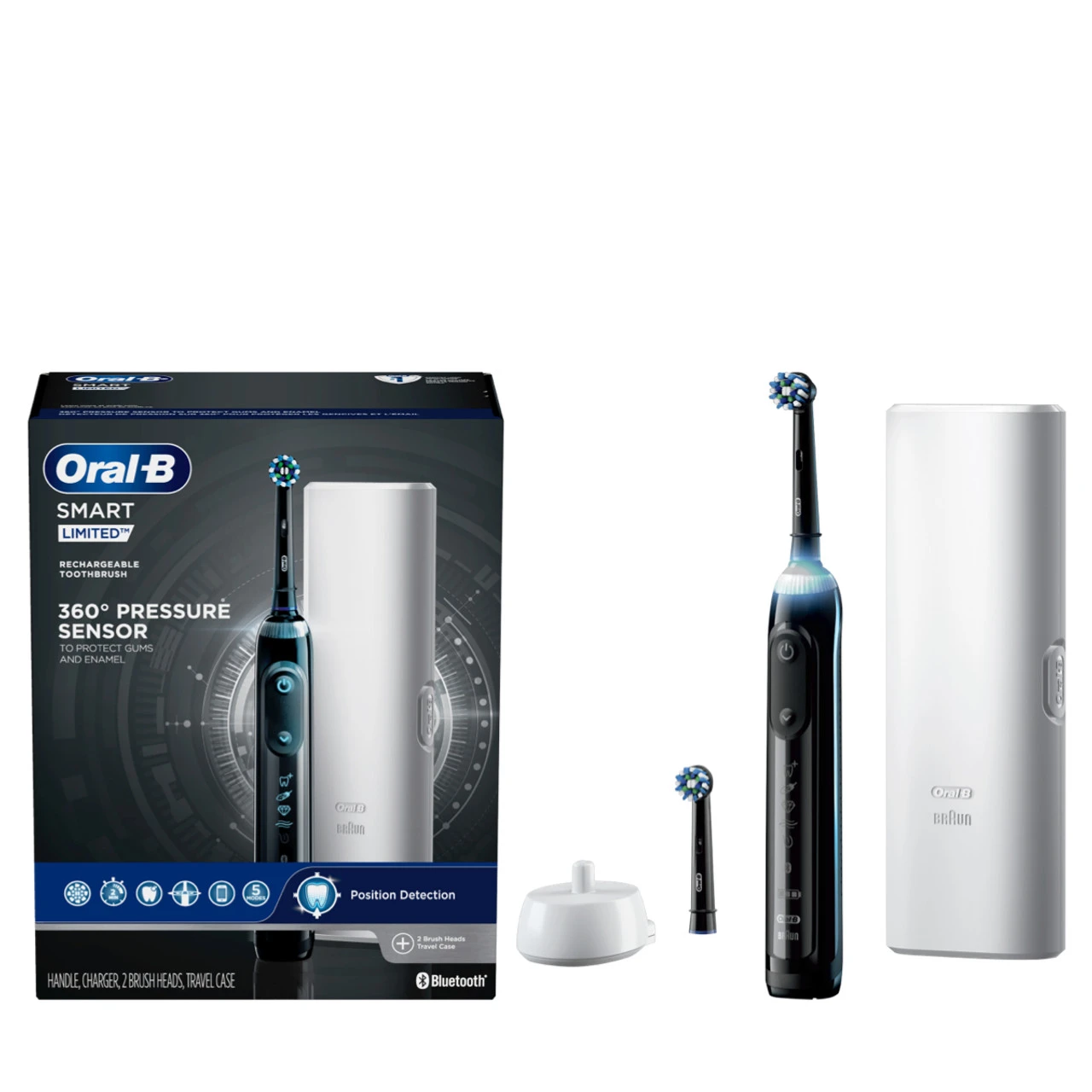 Use the Oral-B App to seamlessly pair your Smart Limited brush with a smartphone and you’re on your way to brushing like your dentist recommends. The Oral-B Smart Limited comes with Position Detection technology which uses Bluetooth technology, your smartphone, and facial recognition technology to provide you with real-time feedback about your brushing habits. The 360 SmartRing with LED lights allows you to personalize your brushing experience with your choice of 12 colors. The SmartRing works with the integrated timer and pressure sensor to provide you with visual feedback on brushing time and brushing pressure. Together, they help you ensure you brush for the recommended 2-minutes while making sure you brush with appropriate pressure to protect your gums from over-brushing. The brush features 5 brushing modes so you can further customize your brushing experience based on your specific oral care goals. This highly advanced brush features a dentist-inspired round head that surrounds and cups each tooth with dynamic oscillating, rotating and pulsating movements to remove up to 500% more plaque than a regular manual toothbrush. Trust in the precision engineering of Braun and the dental expertise of Oral-B, the #1 brand used and recommended by dentists worldwide.